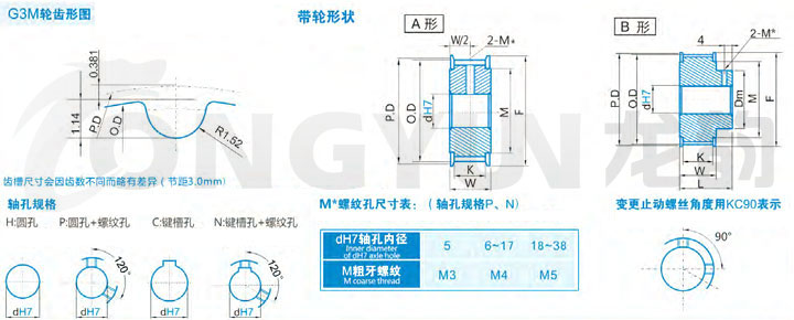 | 規格 | 形狀 | 節徑P.D | 外徑O.D | 擋邊外徑F | 擋邊內徑M | 輪轂直徑Dm | 內孔dH7 | |||||