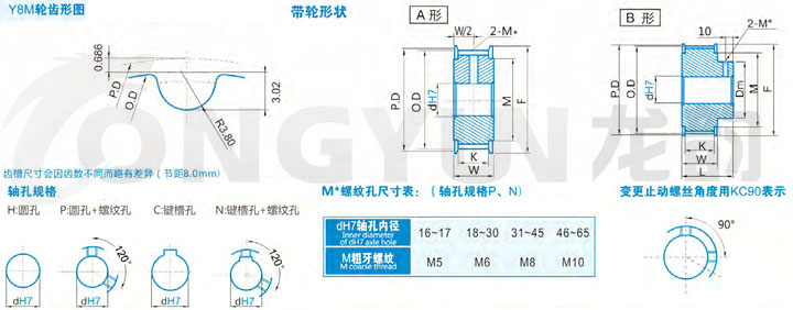 | 規格 | 形狀 | 節徑P.D | 外徑O.D | 擋邊外徑F | 擋邊內徑M | 輪轂直徑Dm | 內孔dH7 | |||||