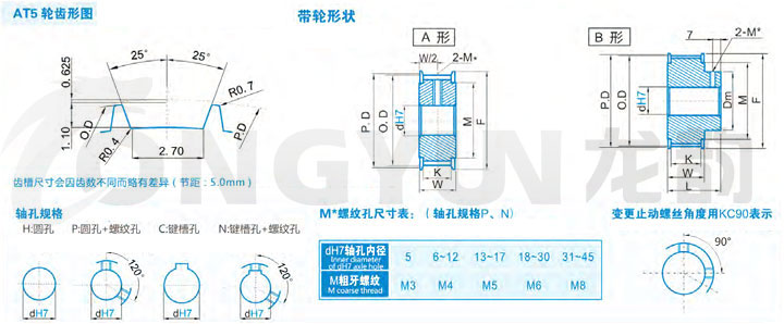 規格 形狀 節徑P.D 外徑O.D 擋邊外徑F 擋邊內徑M 輪轂直徑Dm 內孔dH7