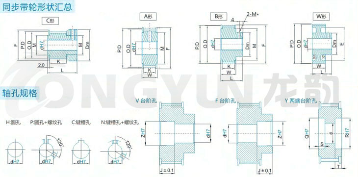 HTD圓弧齒同步帶輪齒形分類:HTD2M型、HTD3M型、HTD5M型、HTD8M型、HTD14M型、HTD20M型