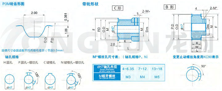 | 規格 | 形狀 | 節徑P.D | 外徑O.D | 擋邊外徑F | 擋邊內徑M | 輪轂直徑Dm | 內孔dH7 | ||||